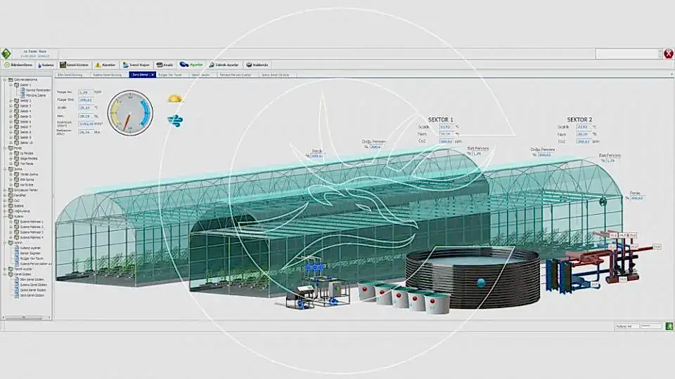 SERA İÇİNDE KONTROL EDİLEN EKİPMANLAR: Çatı pencereleri, Isı perdesi, Sirkülasyon fanı, Egzost (emiş) fanı, Sisleme, Cooling pad, Yağmurlama, CO2, Isıtma.